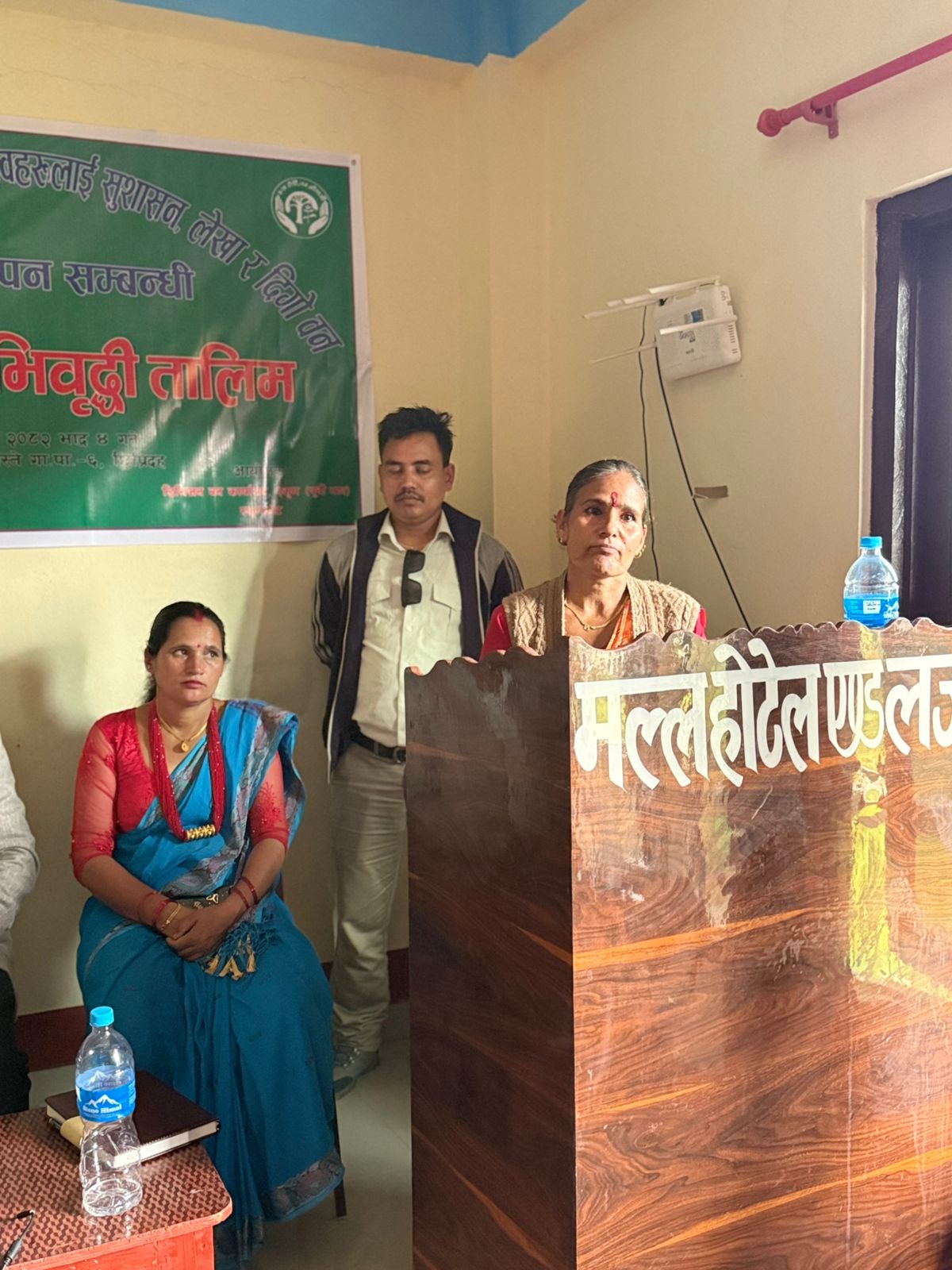 सामुदायिक वनका महिला नेतृत्वलाई सुशासन, लेखा तथा दिगो वन व्यवस्थापन सम्बन्धी क्षमता अभिवृद्धि तालिम ४ भाद्र २०८२ रुकुमकोट